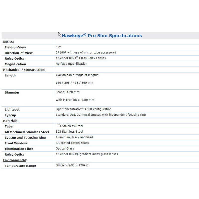 Gradient Lens PH07-NVK Endoscopes Description : 7″/180mm Pro Hardy Kits Diameter of Pro Hardy : 0.250″/6.35mm Diameter of Mirror Tube : 0.313″/8.00mm