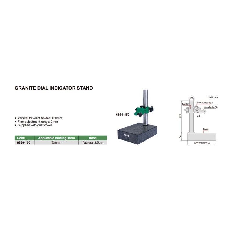 6866-150Granite Dial Indicator Stand with Fine Adjustment | Insize 6866 Series | Travel 150mm | Flatness 2.5micron