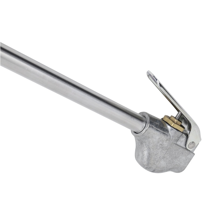 Enhance your pneumatic arsenal with our Safety Blow Gun, featuring a convenient 4′ angled extension, specially crafted for tackling challenging and inaccessible areas. This blow gun is equipped with a 1/4″” NPT air inlet, ensuring compatibility with various air tools, and boasts a robust maximum working pressure of 150 PSI for reliable performance. The package includes both a safety nozzle and a versatile rubber tip, offering flexibility in applications.