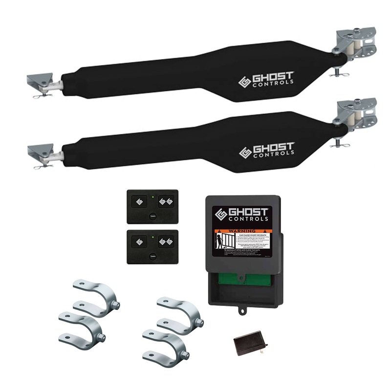 Includes two opener arms, tube gate brackets, and mounting hardware for 6×6 wood posts. Compatible with additional accessories for advanced setups.