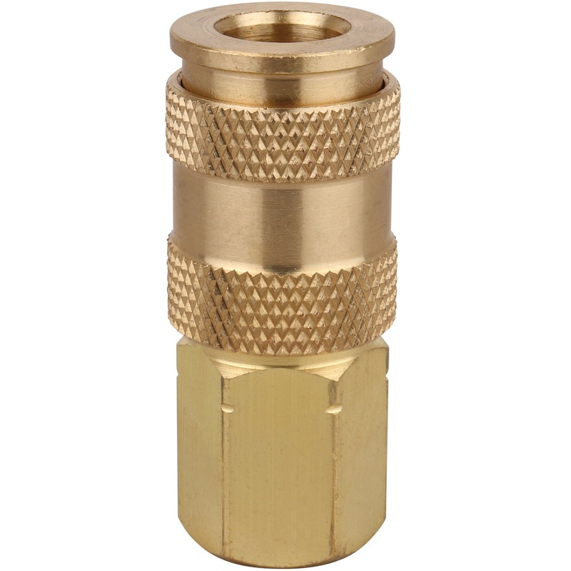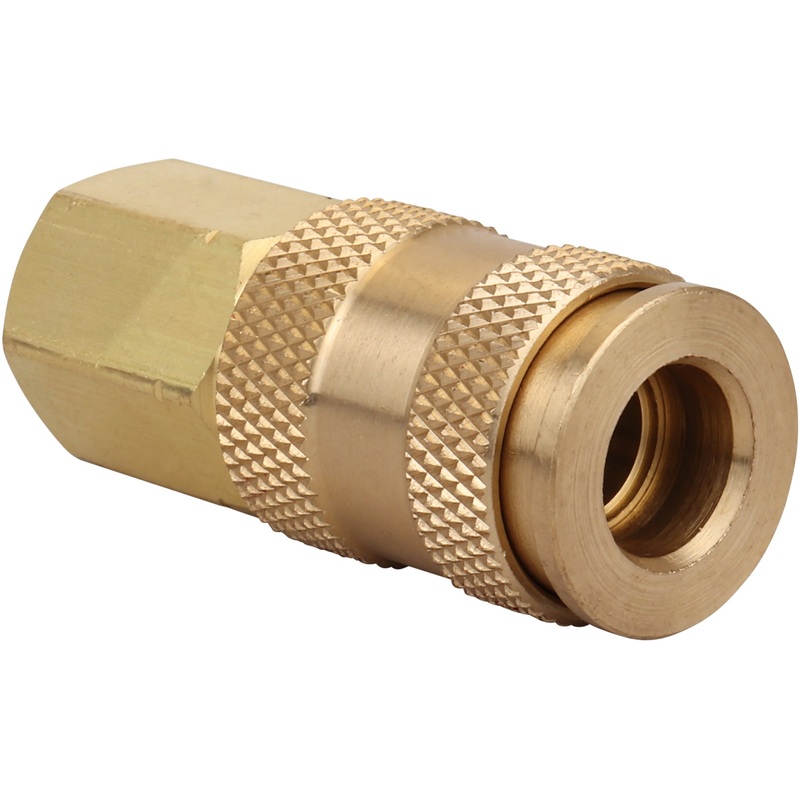 High flow V style couplers will accept A, M and V style plugs, however, to retain maximum air flow use V style plugs. Sleeve release is a push type and is easy to use; simply push plug into coupler to engage, pull sleeve back to remove. Perfect for high volume, low pressure applications. V style couplers have a 1/4″ basic flow size and a maximum pressure of 300 PSI.
