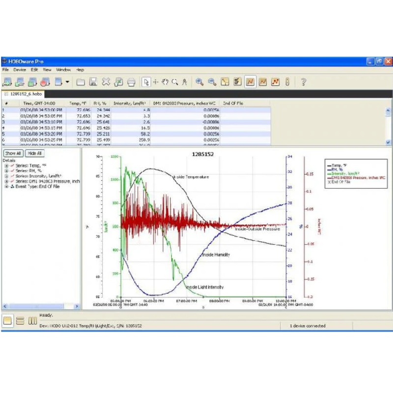 Use this software for easy launch and readout of your HOBO USB data logger as well as flexible plotting of data! Data can be exported for more in-depth analysis using other programs including spreadsheets. The software allows you to set launch parameters such as which channels to record, sample interval, and start type (immediate, delayed, interval, or triggered); monitor battery level; and synchronize logger clocks to the computer clock. With the graphing capability, you can view multiple parameters from a single logger on one graph, zoom in on data of interest, set axes ranges, display data in different formats, and display recorded events in graphs or file exports. You can also verify logger operation before launch or during logging, as well as displaying real-time sensor readings, memory used, and battery voltage. One-click conversion allows for easy data upload into Microsoft Excel software or other programs. The Windows version offers enhanced features which allow for the combination of data from multiple loggers or deployments, saving of current data for future use, linear scaling for external inputs, listing of recently accessed files, and automatic internet updates.