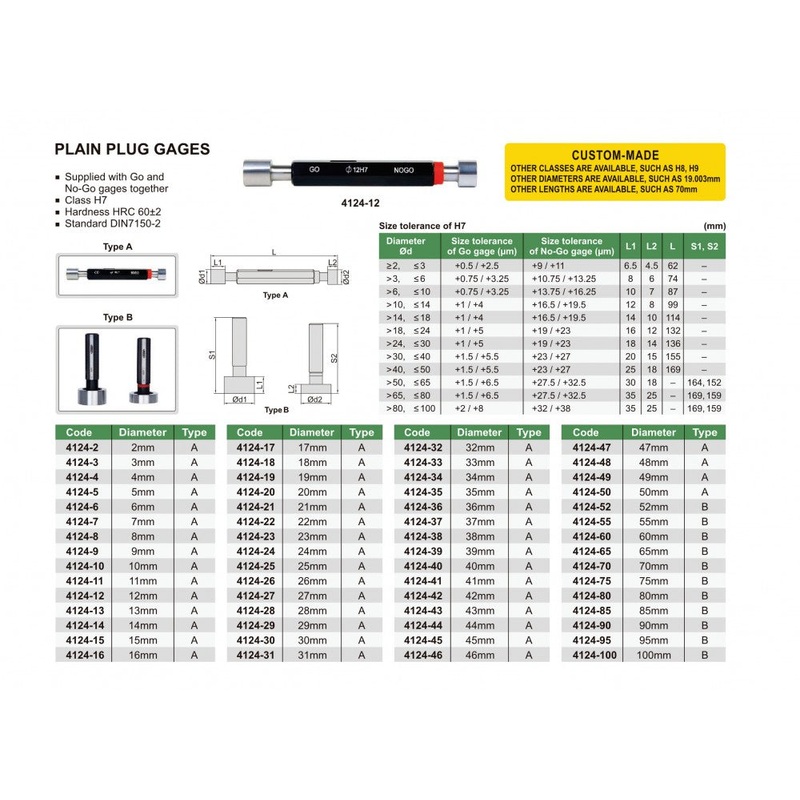 Insize 4124-18 , 18mm Plain Plug gauge H7, Din 2245
