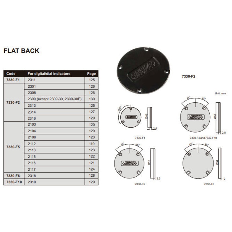 INSIZE 7330-F2 Flat Back for Digital/Dial Indicators