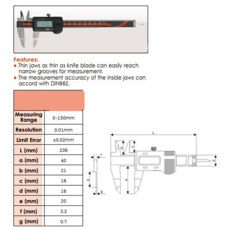 ,Digital Blade Caliper, 0-150mm/0-6″, Resolution .01mm/.0005″, Accuracy .001″Inspec 402-13-212,Digital Blade Caliper, 0-150mm/0-6″, Resolution .01mm/.0005″, Accuracy .001″