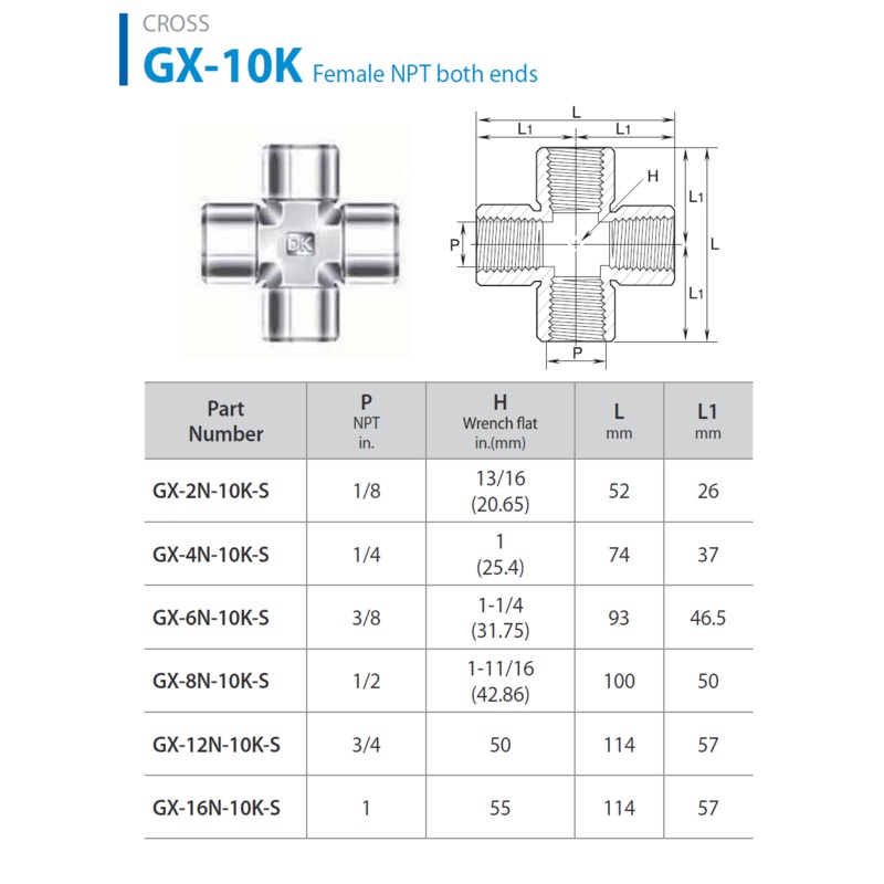 • Fine pipe thread construction equals or exceeds the requirement of ASME B1.20.1 to ensure maximum thread engagement