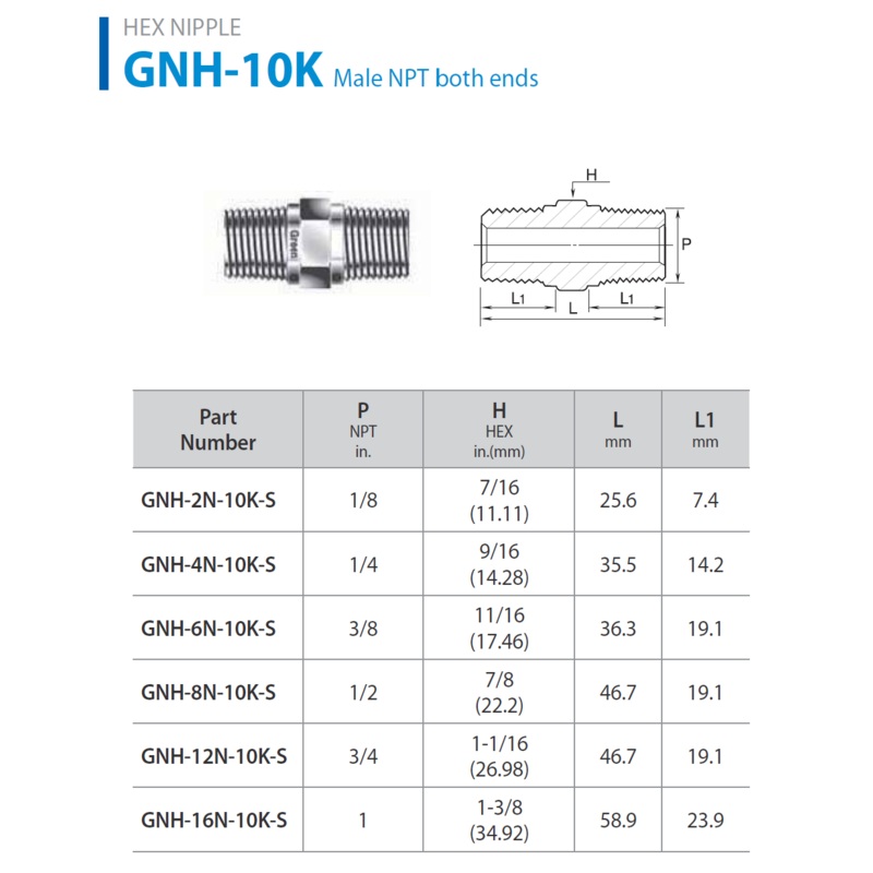 Instrumentation Pipe Fittings – Hex Nipple 10K