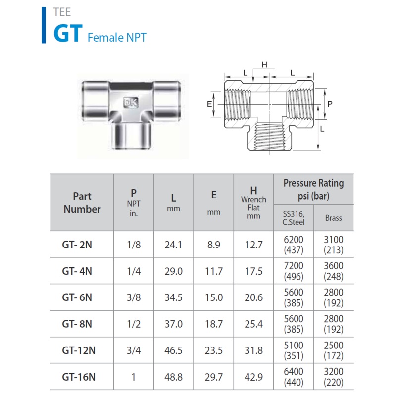 - Fine pipe thread construction equals or exceeds the requirement of ASME B1.20.1 to ensure maximum thread engagement