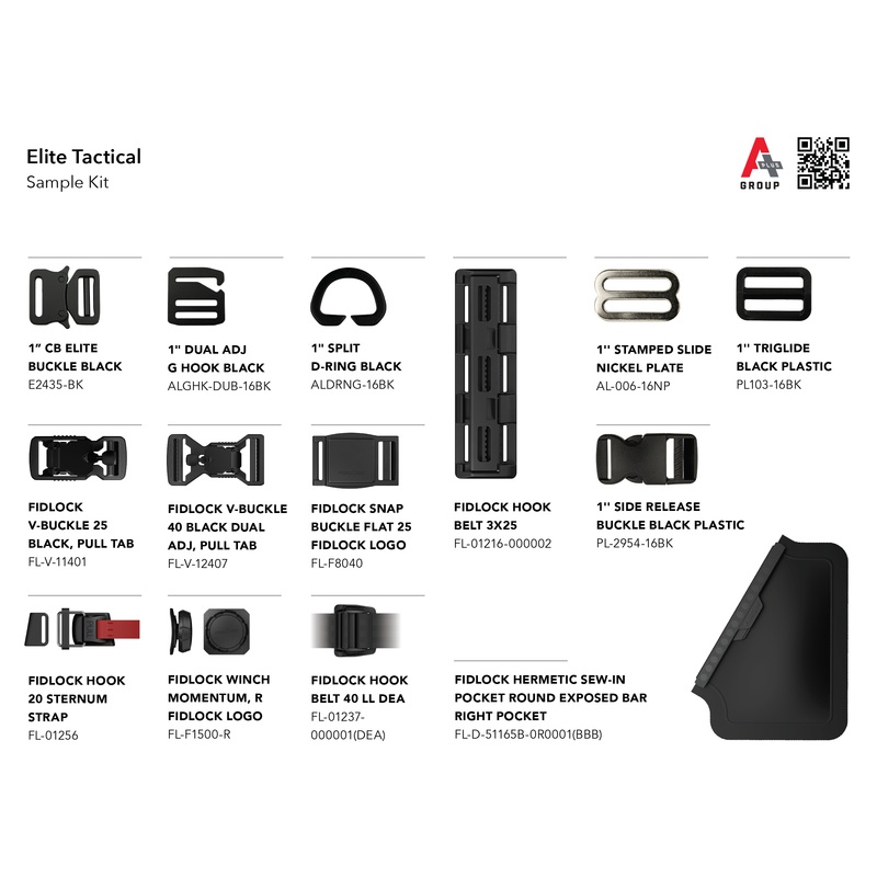 In an ever changing world it can be hard to find a buckle expert. Fortunately, we have them here at A+ and we asked Jeremy from our sales team to lend us some industry knowledge. Jeremy has put together his kit of must have tactical fasteners, based on what is in the highest demand from soft good manufacturers of tactical products. This kit contains 14 pieces of premium hardware from our FIDLOCK, Elite & Essential lines. Also included in the new FIDLOCK HERMETIC sewable waterproof pocket. If you design tactical soft goods, you need this kit: