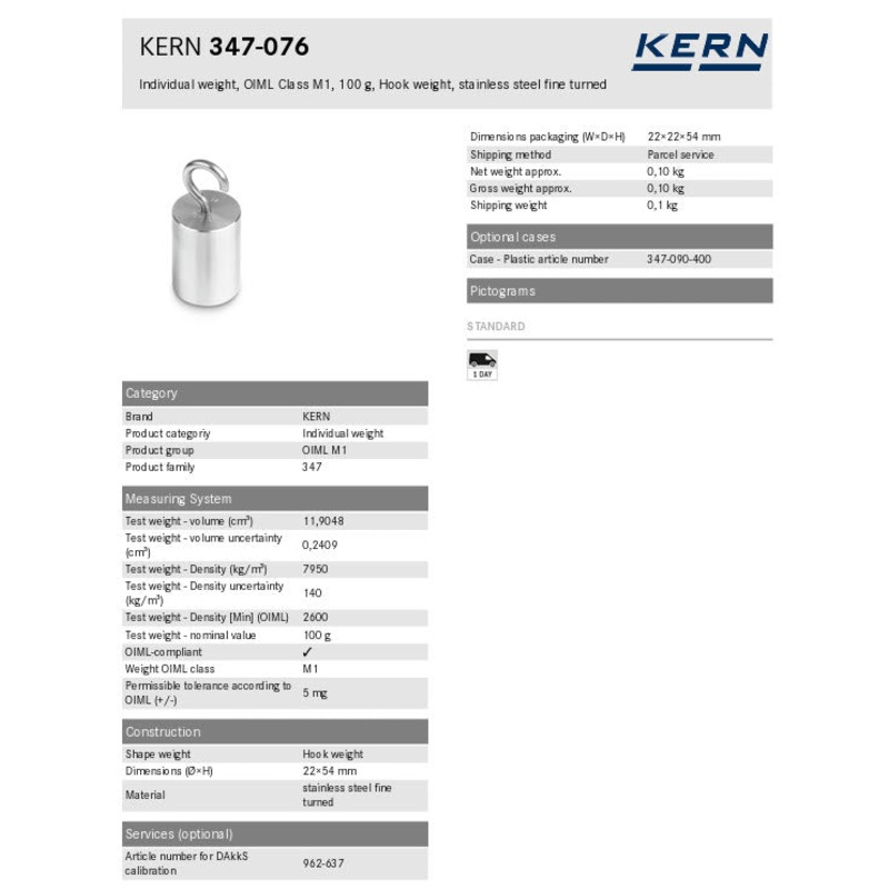 Individual weight, OIML Class M1, 100 g, Hook weight, stainless steel fine turned