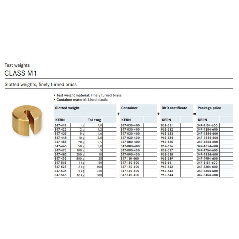 Kern 347-5454-600 10Kg Slotted Weight Tolerance +/-500mg, Used with Beam Bar, DKD Certificate of Calibration Included