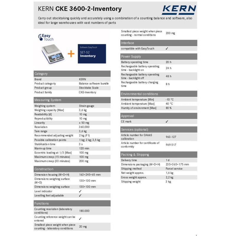 • The combination of the KERN CKE high-precision counting balance with EasyTouch SET-52 Inventory makes stocktaking considerably easier. Counting lists and counting errors are a thing of the past