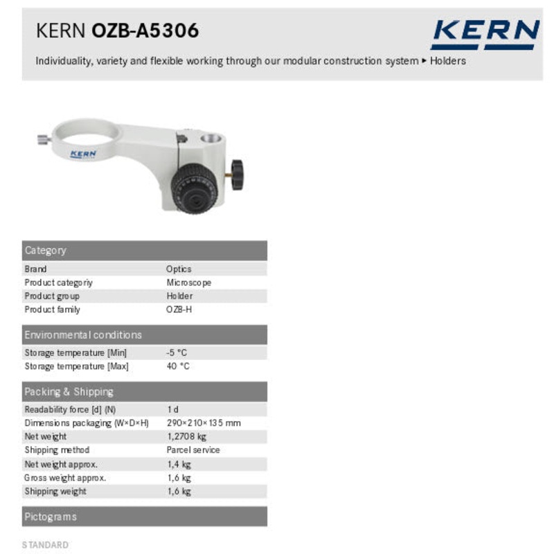 - Holder with coaxial coarse and fin focusing knob and adjustable torque of the hand wheel. Suitable for all universal stands (except of spring loaded arm) and for all basic stands as possible accessoires.