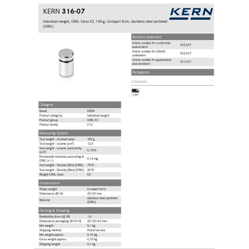 - Kern E2 precision individual weights are ideal as mass standards or for calibration of high precision balances