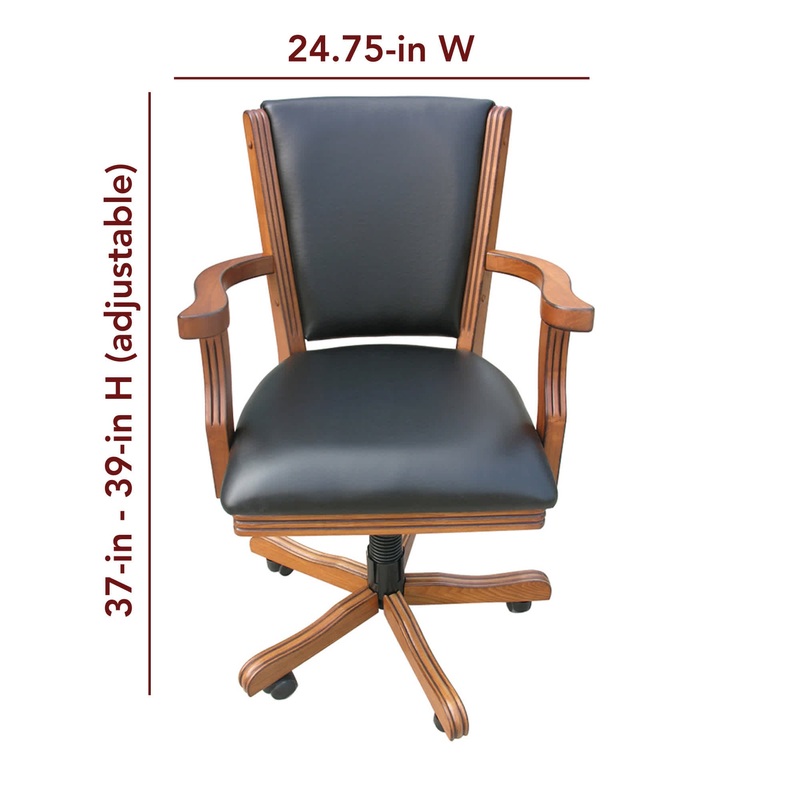 This Kingston Armchair set with a beautiful honey oak finish is the perfect match to the Kingston Oak Poker Table. These comfortable armchairs are constructed of durable birch hardwood. Featuring black leatherette, padded bottom and back, and a gas tilt and swivel mechanism, these chairs will provide comfort and class and are easy to keep clean.