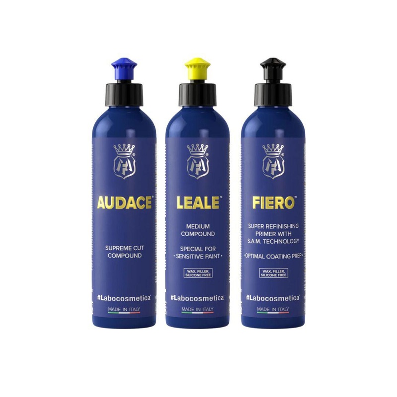Step into a world of automotive brilliance with our exclusive Labocosmetica 3 Step Polishing Bundle. Crafted for enthusiasts and professionals alike, this comprehensive trio of compounds ensures a flawless finish on your vehicle. The Heavy Cut Compound eliminates imperfections, while the Medium Compound refines, and the Finishing Compound adds showroom-worthy radiance. Each compound enhances the other, creating a dynamic synergy for a flawless finish.