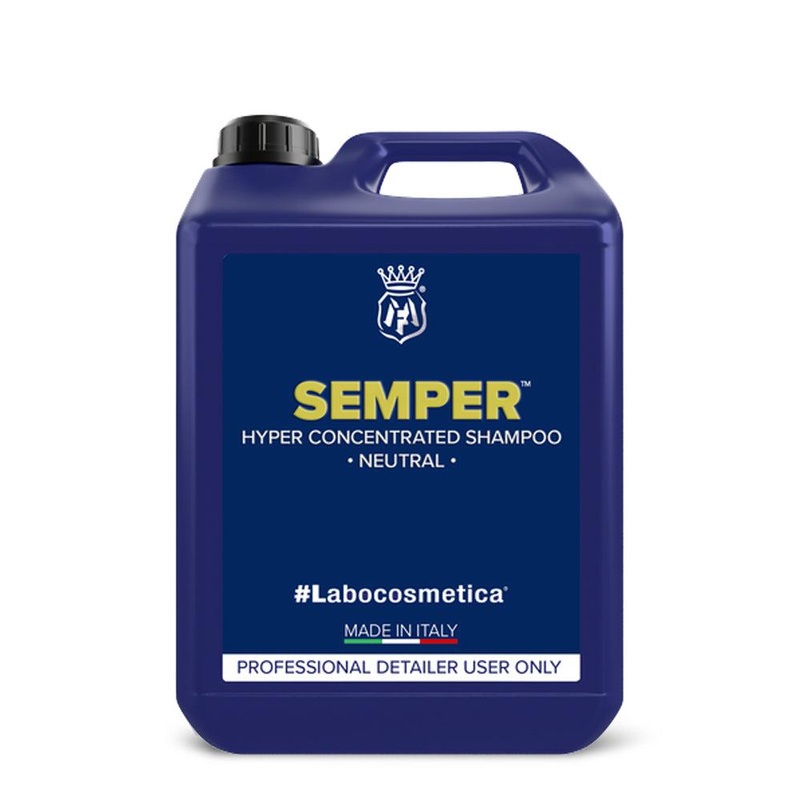 Labocosmetica SEMPER does not contain any waxes or brightness enhancers and does not cause streaks. Its lather has been developed to dissolve the dirt on the cars surface, encapsulate it and keep it in suspension, removing it safely yet gently. Its high foaming properties, with remarkable lubrication, create a “”foam pillow”” that allows SEMPER to wash the car with no risk of the dirt damaging the body.