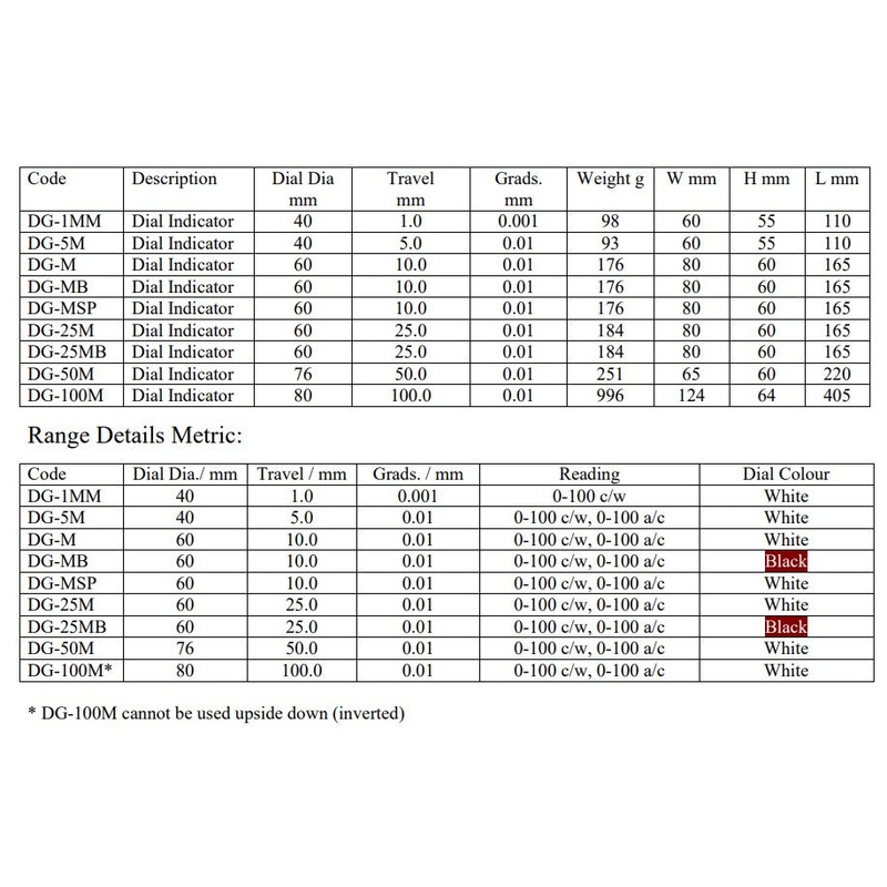 Long Travel Plunger Dial Indicators | Range 50mm/2 | 75mm Dial Face | Resolution 0.01mm/0.001