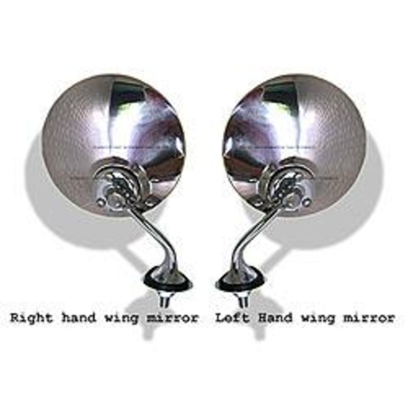 Diecast chrome arm with polished stainless steel 105mm head; the base is 45mm x 31mm including mounting gasket. The arm is fitted by means of a single 22mm long x 8mm stud. A very versatile mirror which looks terrific as a door or wing mirror. Tightening the screws on the ball joint plate keeps the mirror in the desired position. Each.Please choose Right or Left (looking forward), Convex or Flat from below.