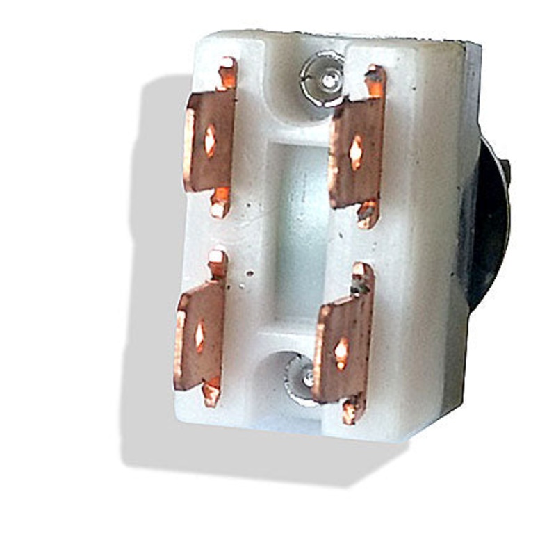 This switch has four 6.3mm Lucar terminals, two of which are common. It can be wired up as an On/Off or Change-over switch On/On. It requires a 14mm diameter fixing hole.