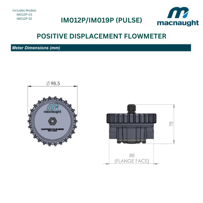 This MacNaught Pulse Oil Meter has an In-line oval gear meter with pulse output only, designed to measure lubricating oils. Flow rate up to 80L/min. Accuracy is around +/- 0.5% of reading with maximum pressure to 10,342kPa (1,500 psi). Fly Lead is included to allow connection to other devices. Fitted with 3/4″ BSP(F) ports.