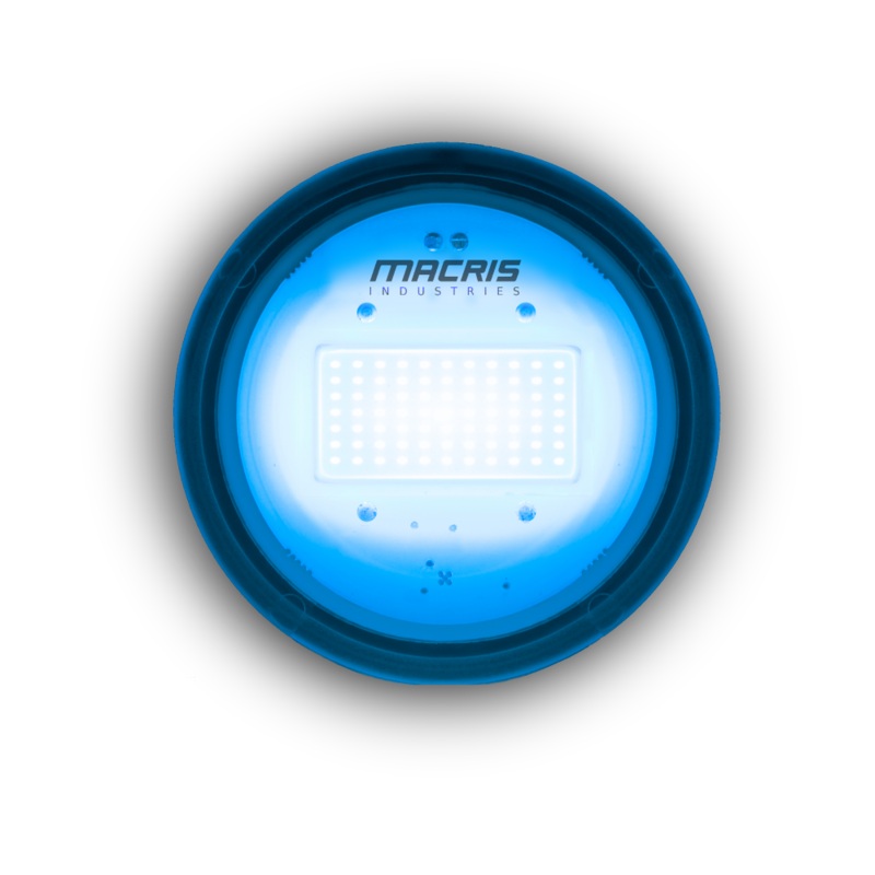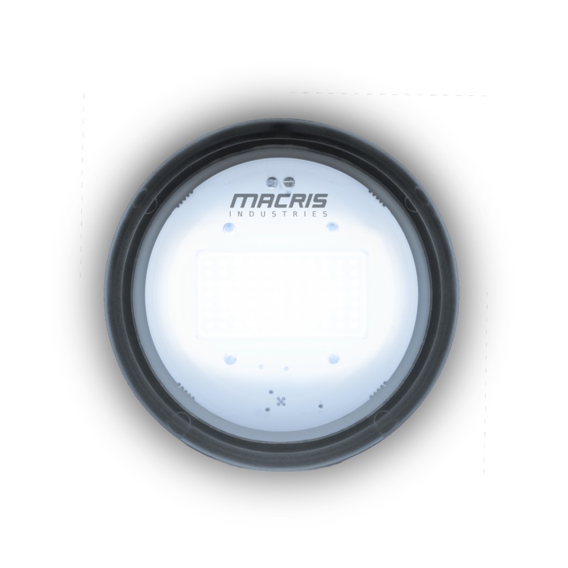 Proprietary Macris Industries manufactured chip-on-board light engine with multi-volt input (10-30VDC) and on-board thermal monitoring.