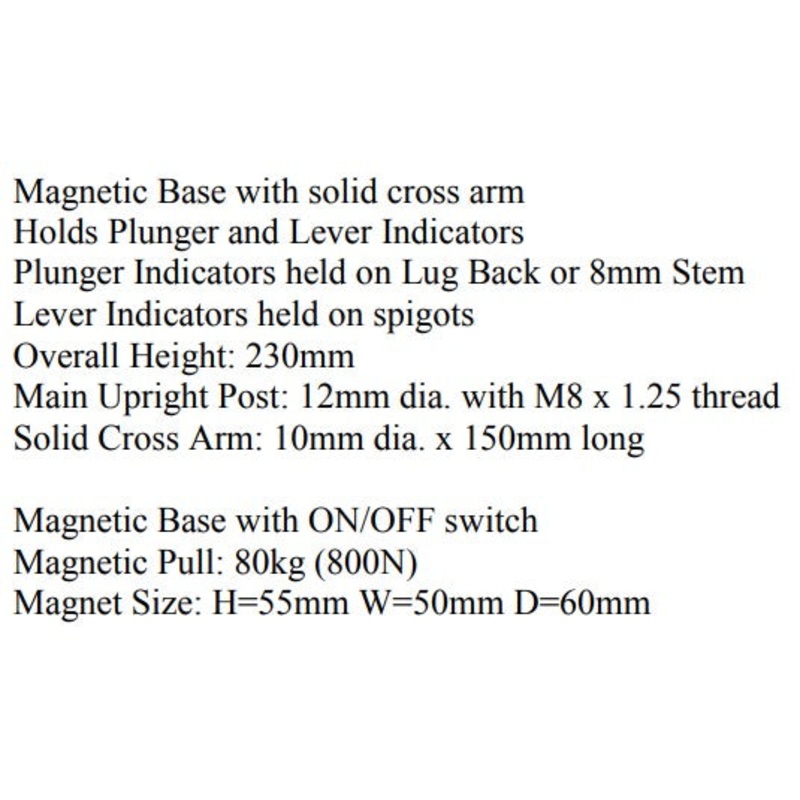 - Plunger Indicators held by lug back or up to 8mm dia stem