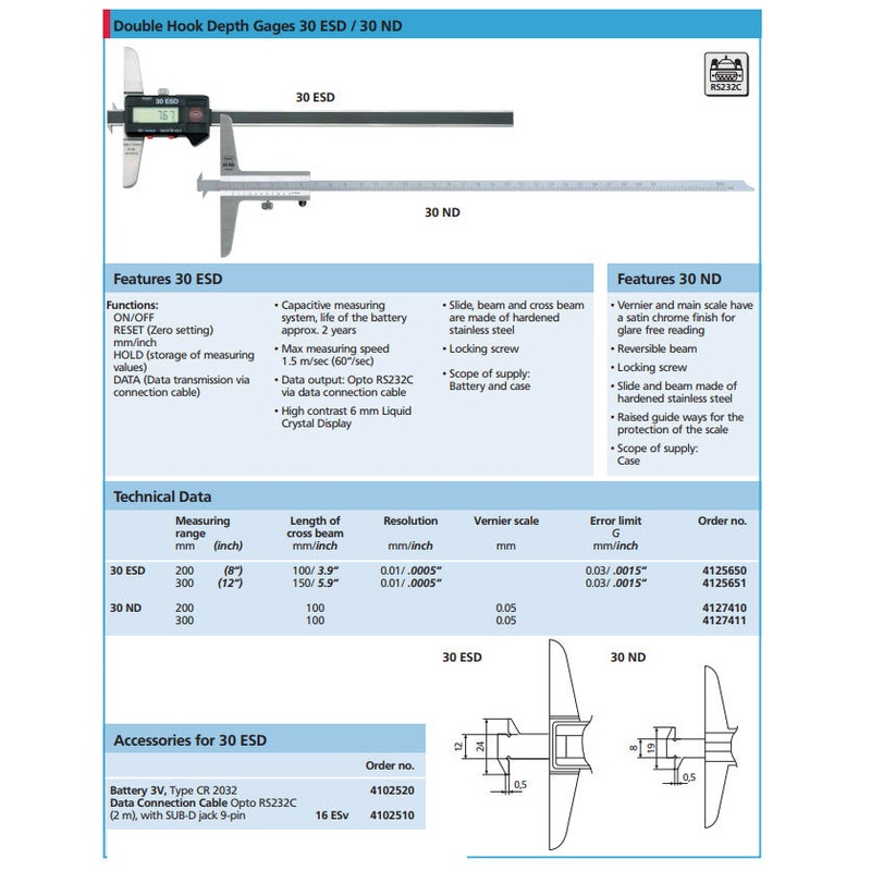 Mahr 4125650 Digital Calipers Depth Gauges IP67 30ESD Model: 30ESD Range: 0-100mm/0-4″ Resolution: .01mm/.0005″