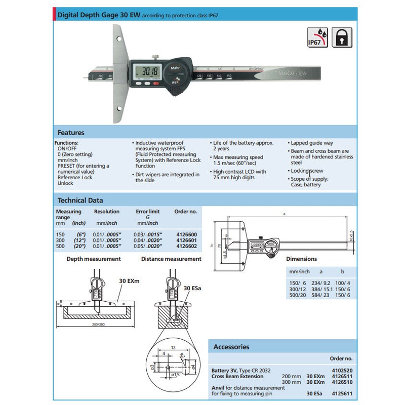 Mahr Digital Depth Gauge IP 67