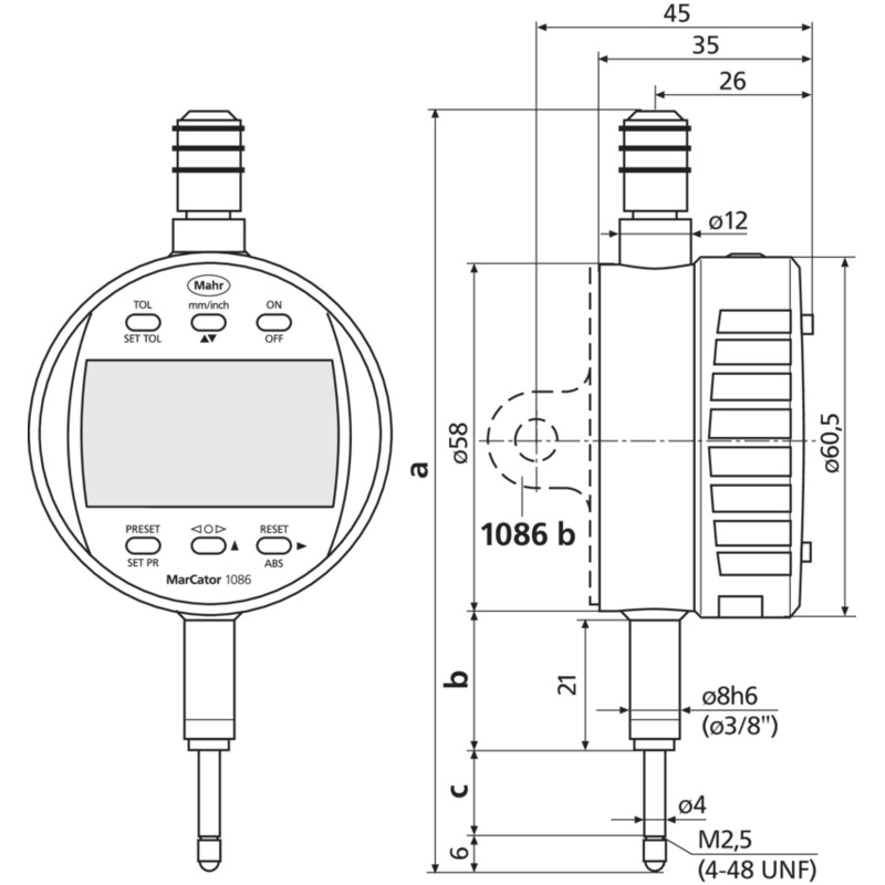 Mahr MarCator 1086 R Digital Indicator: Range 25mm/1; Resolution 0.01mm