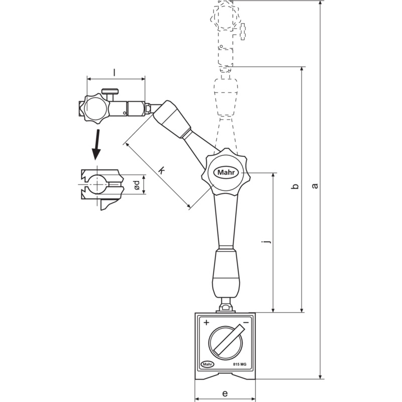 - Dial indicator holder with 8 mm mounting bore and dovetail for dial test indicator measuring devices