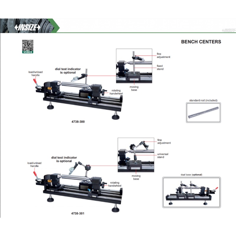 TEEwWG2DXPRqlMeasuring Bench Centers for cylinder measurement with outside diameter 3-180mm or inside diameter 1-40mm | Insize 4738 Series | 150mm Center Distance