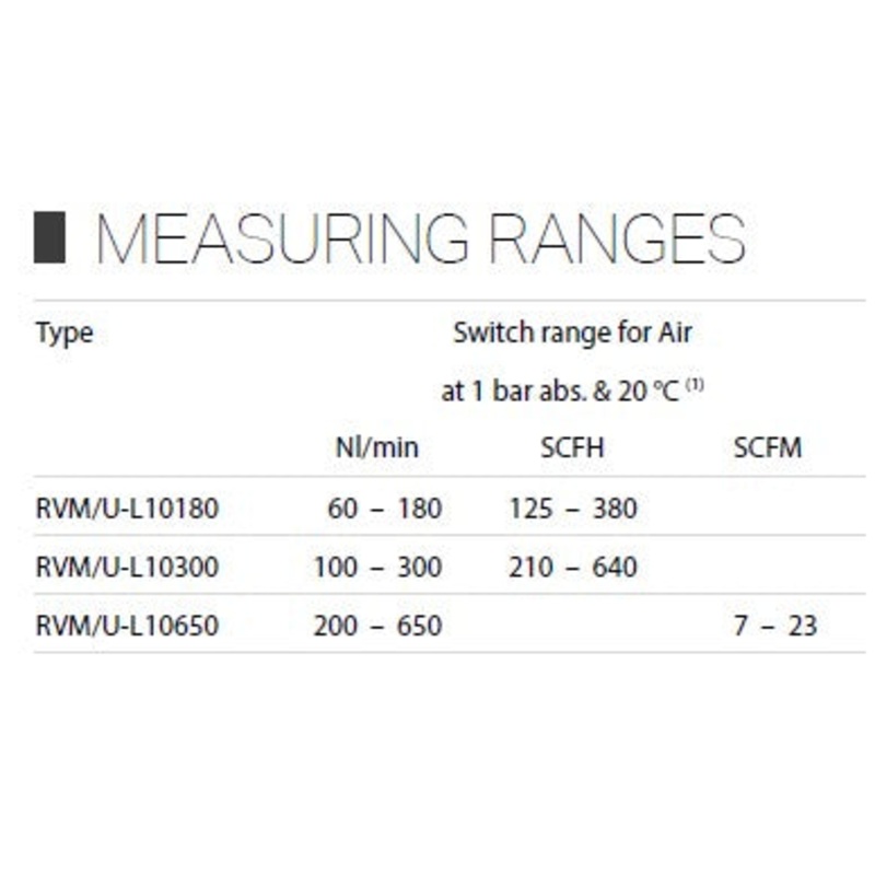 - Ranges for air/gases from 60 up to 650 N/LPM (air)