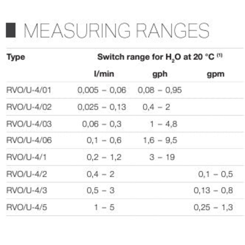 TheMeister RVO/U-4 Flow Switch Monitor is designed to be mounted inline in your pipework, to provide a switch point at your specific flow rate. These Flow Switches are ideal for small pipes where Vane Type Flow Switches arent practical to fit. The Flow Switch Monitors operate on a Float measuring principal and can be installed in any orientation.