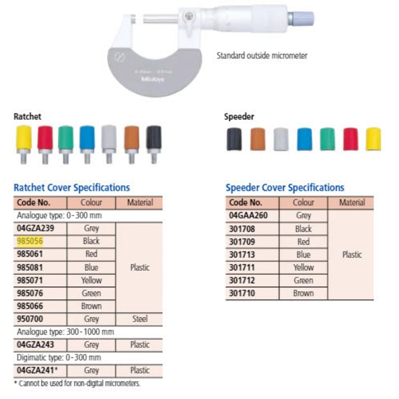 Micrometer Ratchet Stop Plastic for Analog Micrometer 0-300mm, Grey, Item number: 04GZA241 Digital Micrometer only quantity