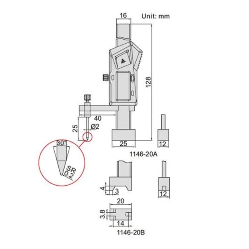 The 1146 Mini DigitalHeight Gage for measuring height difference of 2 surfaces. The Caliper is made of stainless steel for longer tool life and durability from machine shop wear. With optional SPC cable data output. Sizes range from 0-20mm/0-0.8″.