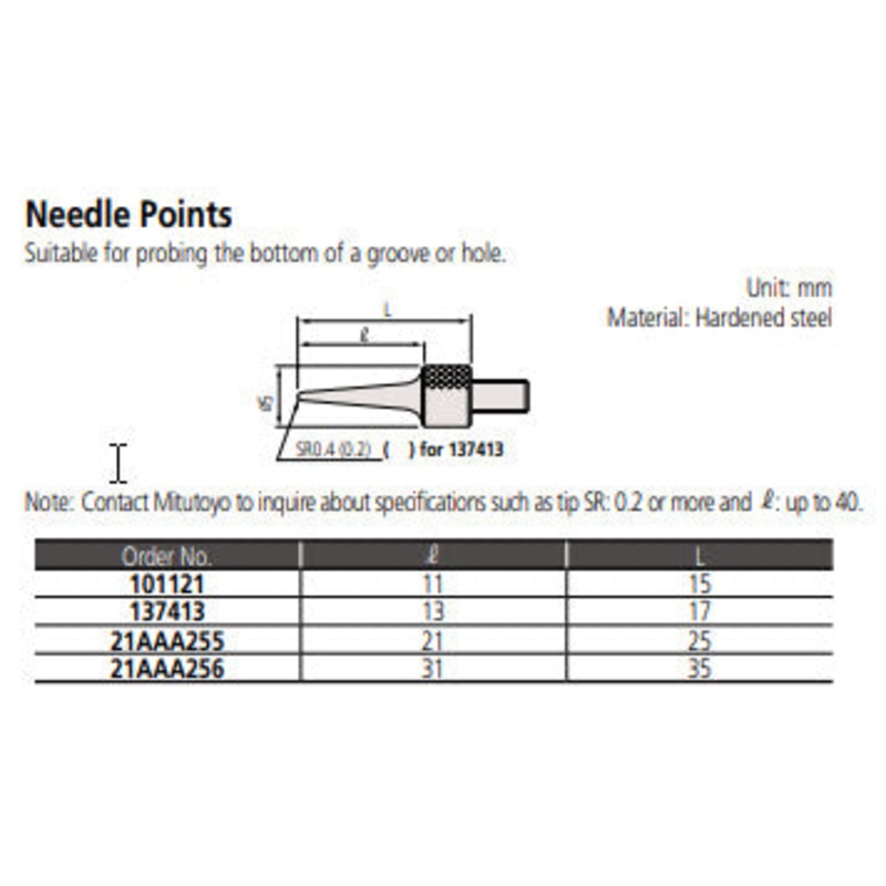 Mitutoyo 101121 Needle Point Extension Rod, 0.4 x 11mm