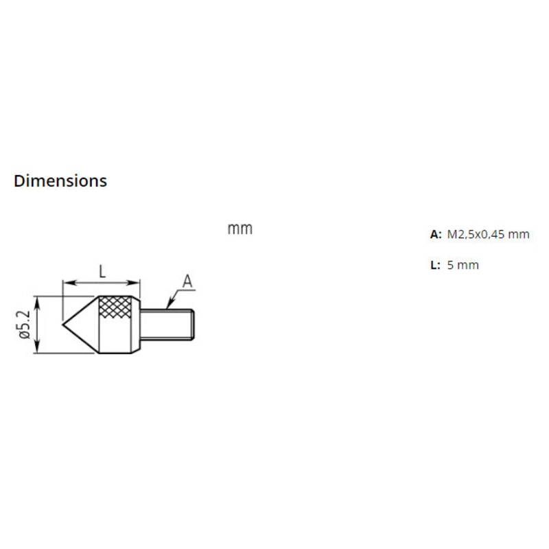 Mitutoyo 101385 Steel Metric M2.5 x .45 Conical Contact Element 5mm Length 90