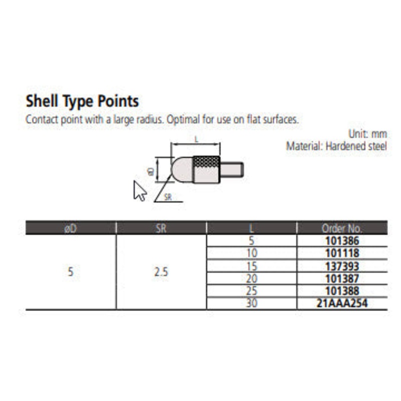 Mitutoyo 101386 Shell Point M2.5 x .45mm Length 5mm Radius 2.5mm