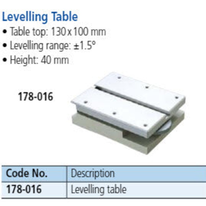 Levelling Table=178-016, Table top= 130 x 100mm, Levelling range = +/-15 degrees, Height =40mm