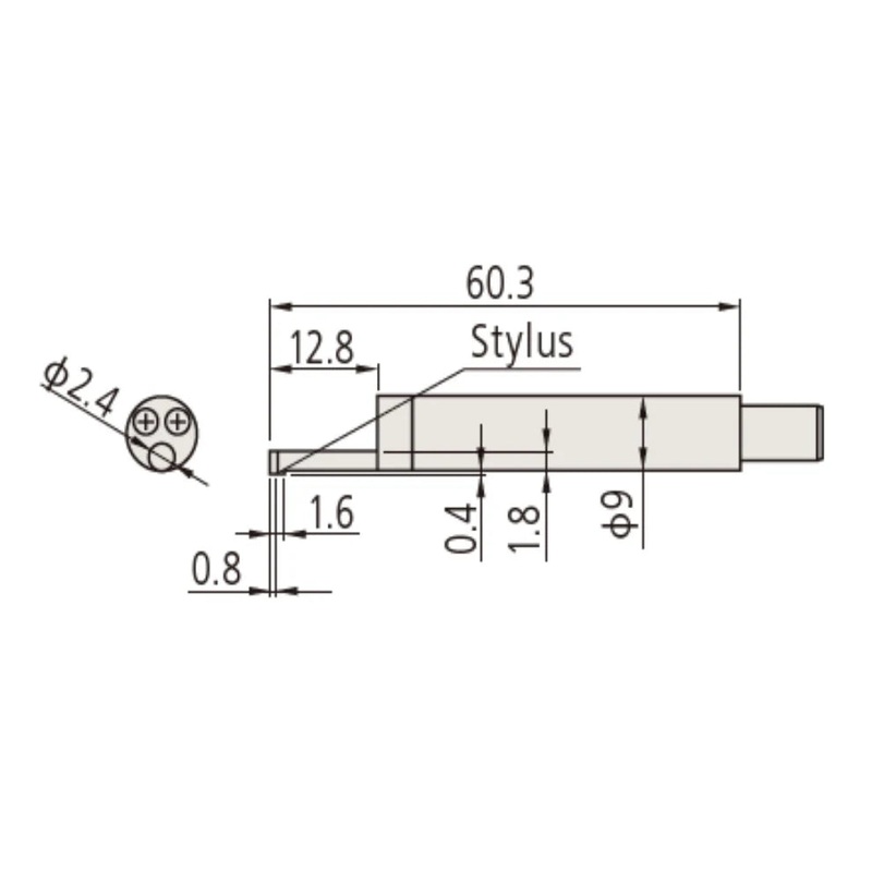 The Standard Detector for the Mitutoyo Surface Roughness Tester models SJ-210 & SJ-310 has a measuring tip that is about 6mm overall height.