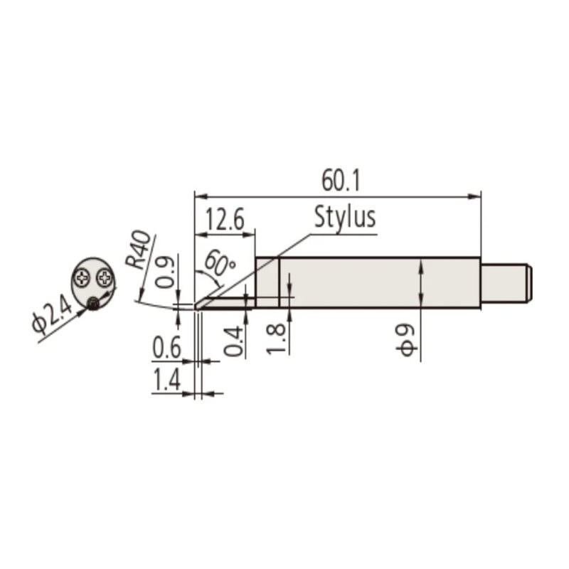 The Standard Detector for the Mitutoyo Surface Roughness Tester models SJ-210 & SJ-310 has a measuring tip that is about 2.4mm tall and is designed to measure the roughness of flat surfaces.