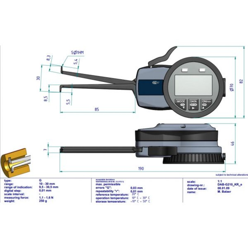 Mitutoyo 209-552 Groove Gauge Range : .40-1.20in/10-30mm Resolution : .0005in 0.01mm Accuracy : .0015/0.03mm, Measuring Contacts : Ball .039”