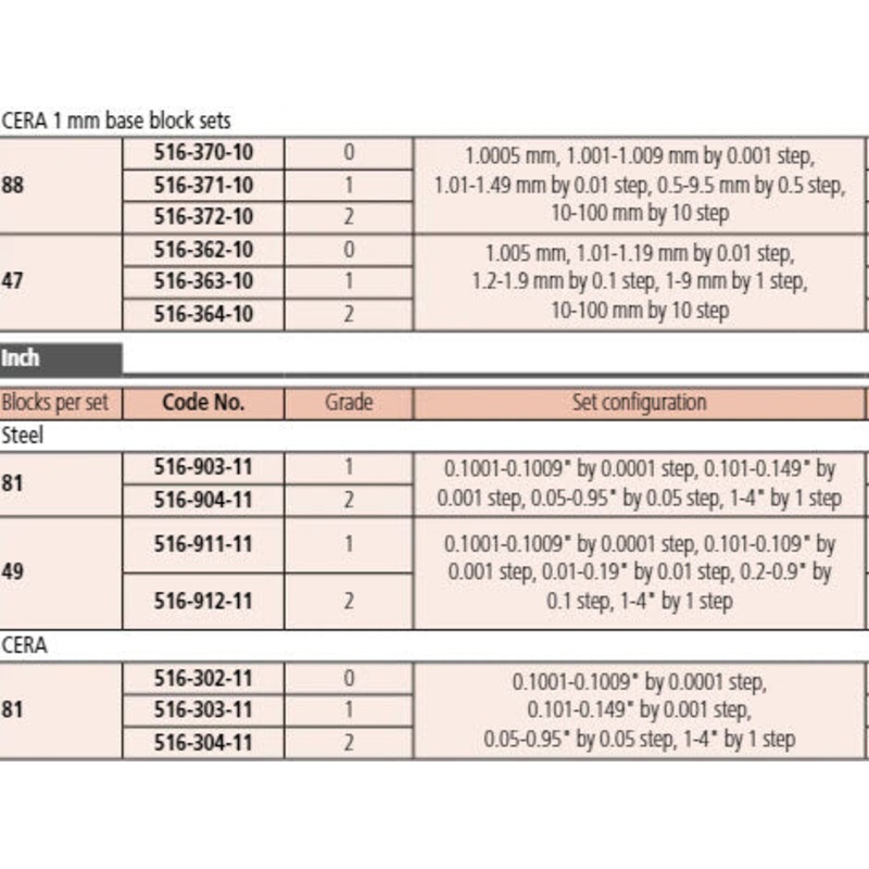 Mitutoyo 516-904-11 Series 516 Imperial Steel Gauge Block Sets Inch, 81 piece Grade2, To BS Standards