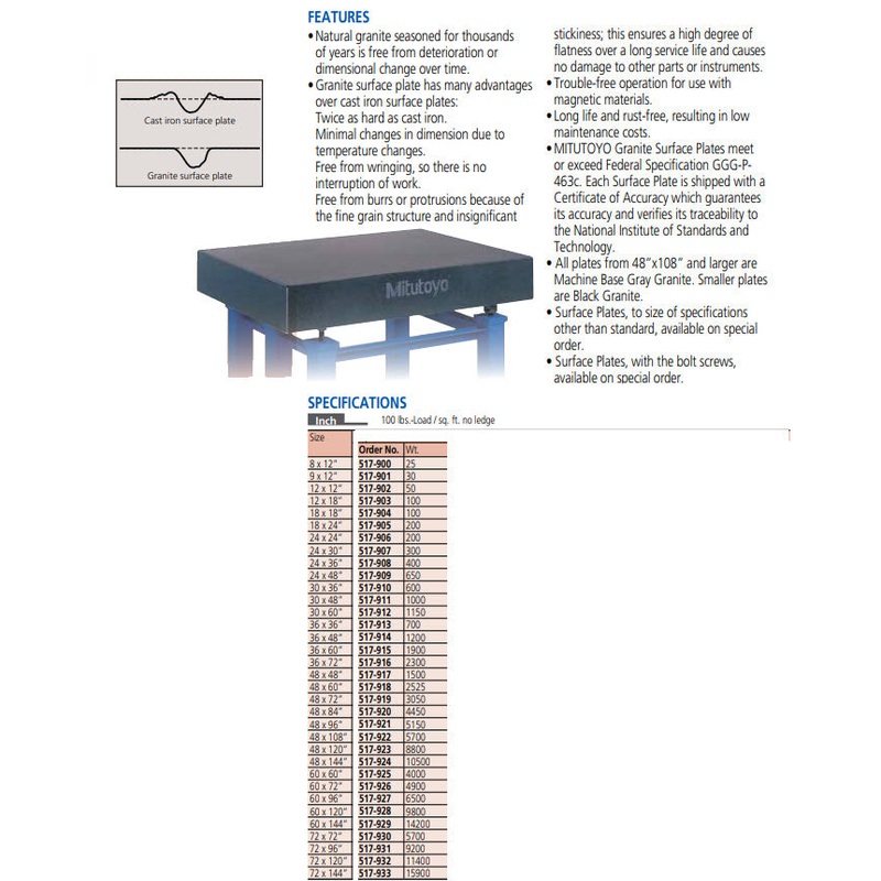 Mitutoyo 517-904-0 Granite Surface Plate Grade 0, BS 817 450x450x75mm