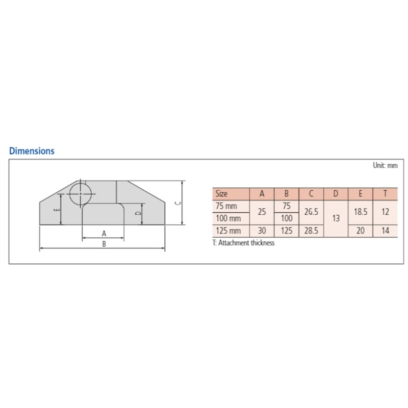 Mitutoyo Depth Base Attachment for use with 100mm/4″, 150mm/6″, and 200mm/8″ calipers, 100mm wide 050084-10