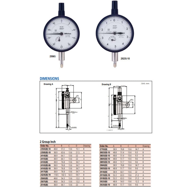 Mitutoyo 2416S-10 Dial Indicator Technical Specifications: