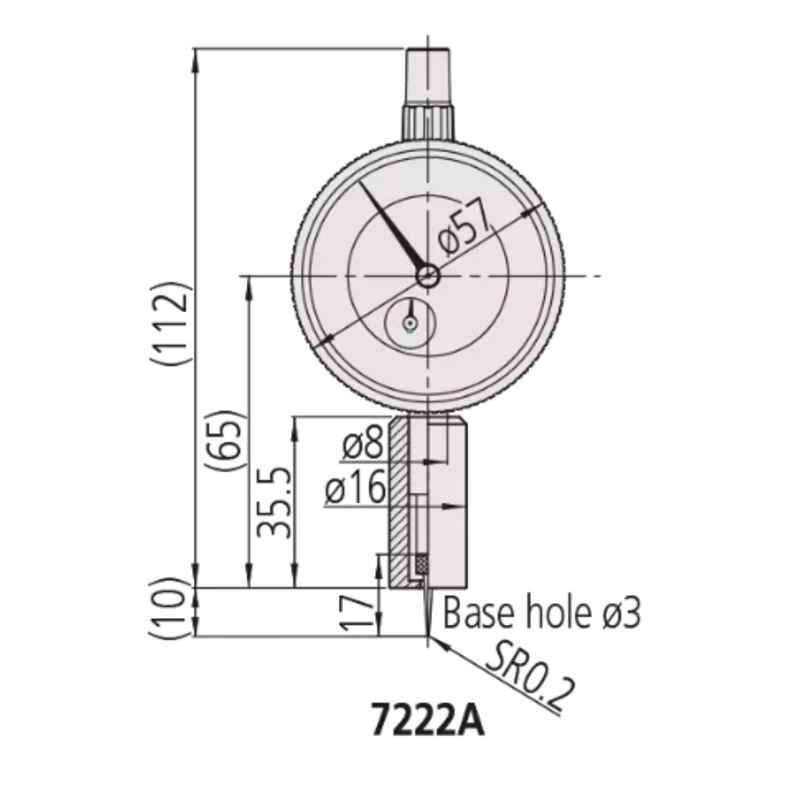 Mitutoyo Dial Indicator Depth Gauge 0-10mm, Ball Point Contact Element, 150mm Base 7222A