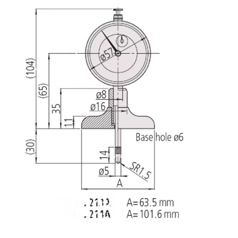 Mitutoyo Dial Indicator Depth Gauge 0-210mm, Ball Point Contact Element, 63,5mm Base 7213A