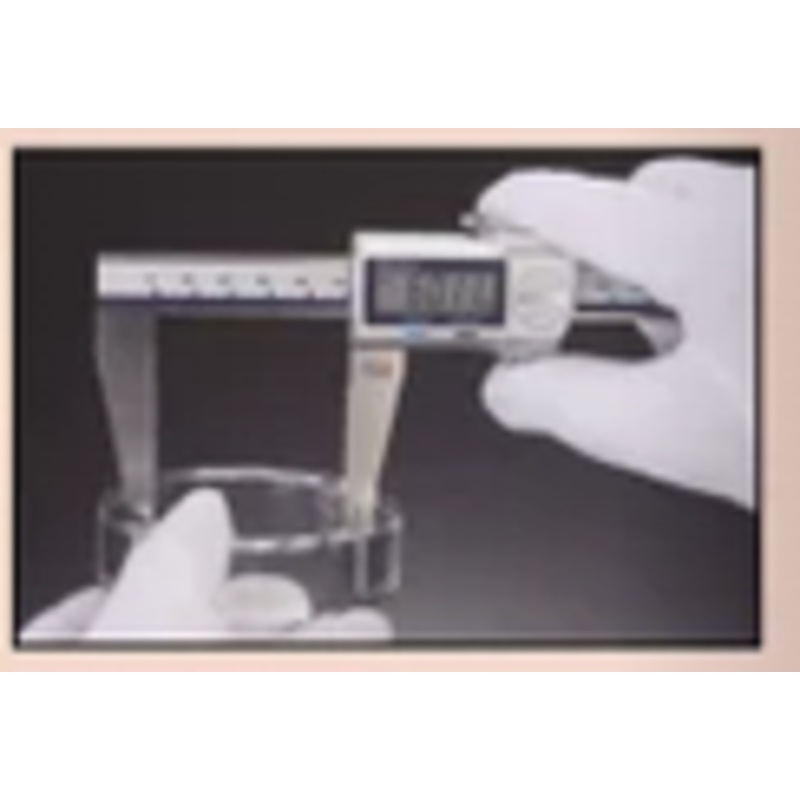 A Mitutoyo digital caliper. Hardened stainless steel construction and equipped with special nib-style jaws. ABSOLUTE System scale for error free, high-speed measurement. SPC data output.